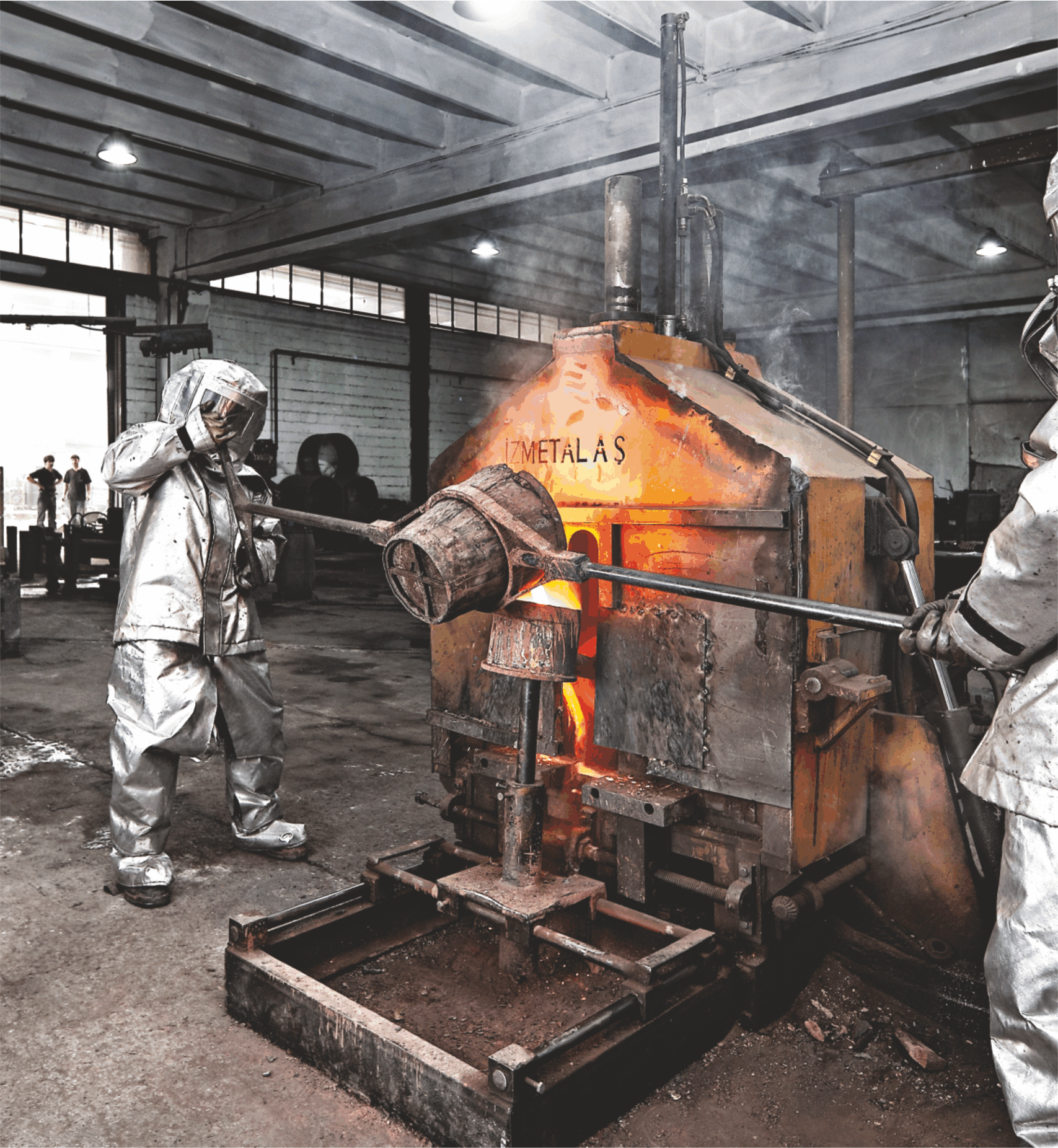 Savurma dökümde, erimiş metal, ekseni etrafında yatay veya dikey olarak dönebilen çelik bir kalıba dökülür. Katılaşmayı sağlamak için kalıbın dışı su ile soğutulur. Yöntem, tutarlı kalitede yoğun dökümler üretir. Döküm işlemi sırasında, erimiş metalde bulunan herhangi bir gözeneklilik, makineyle işlenerek çıkarılan iç tabakada lokalize olur. İz-Metal savurma üretim yöntemini kullanarak dış çapı 1000 milimetreye kadar olan bronz borular üretebilir. Aşağıda belirtilen ölçüler iç çap ve boya göre değişkenlik gösterebilir. Savurma döküm yöntemi ile üretilen bronzlar kum döküme göre %25 daha verimli olup mekanizmaların ömrünü uzatır ve bakım giderlerini en aza indirir.