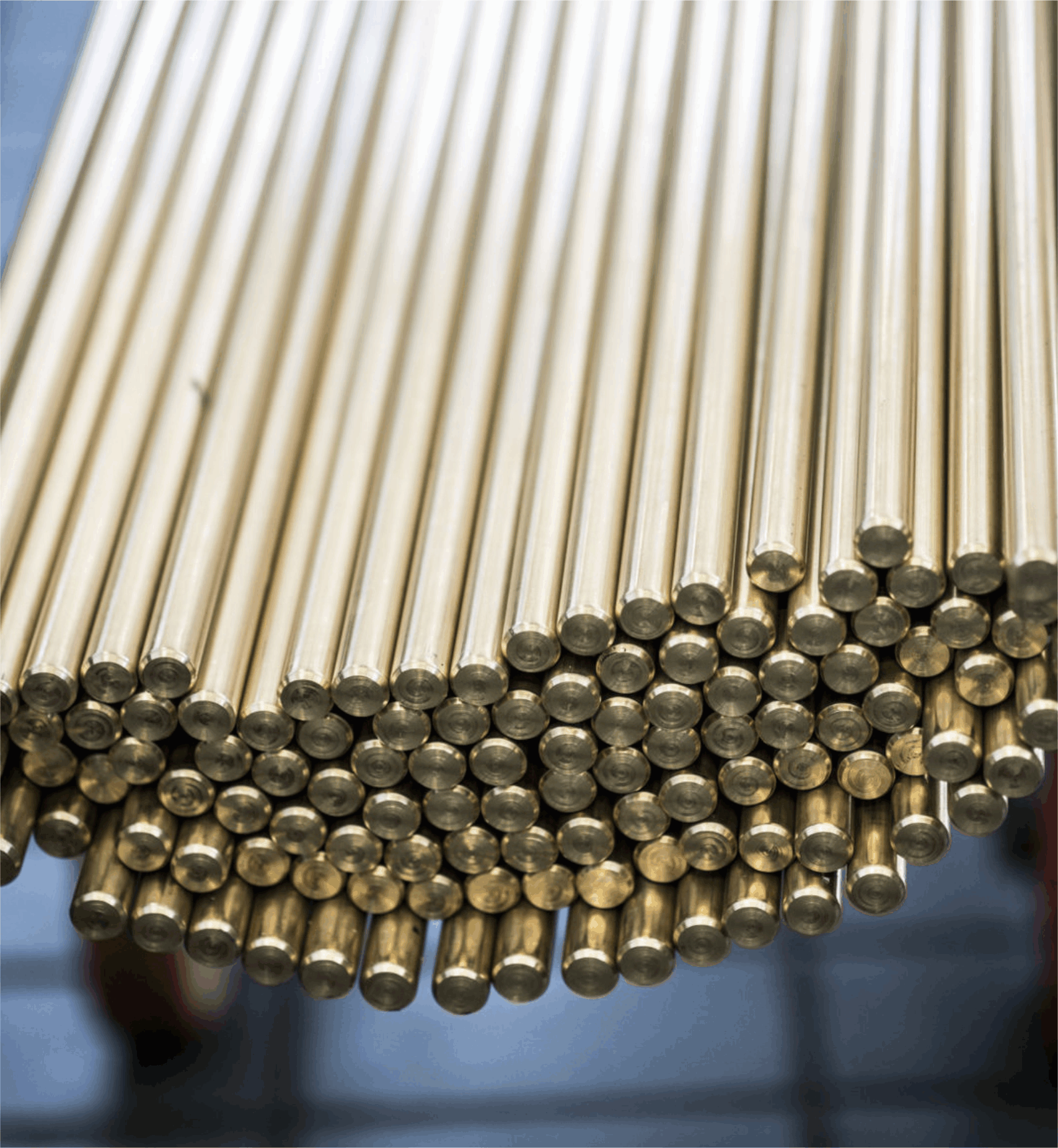 Aylık 1500 ton kapasiteye sahip tesislerimizde pirinç çubuklar TS, B S, DIN, JIS, ASTM ve EN standartlarında 10 mm-80 mm ‘e kadar yuvarlak, altı köşe, kare ve silme olmak üzere kalibreli ve pres mamul şeklinde üretilmektedir.
